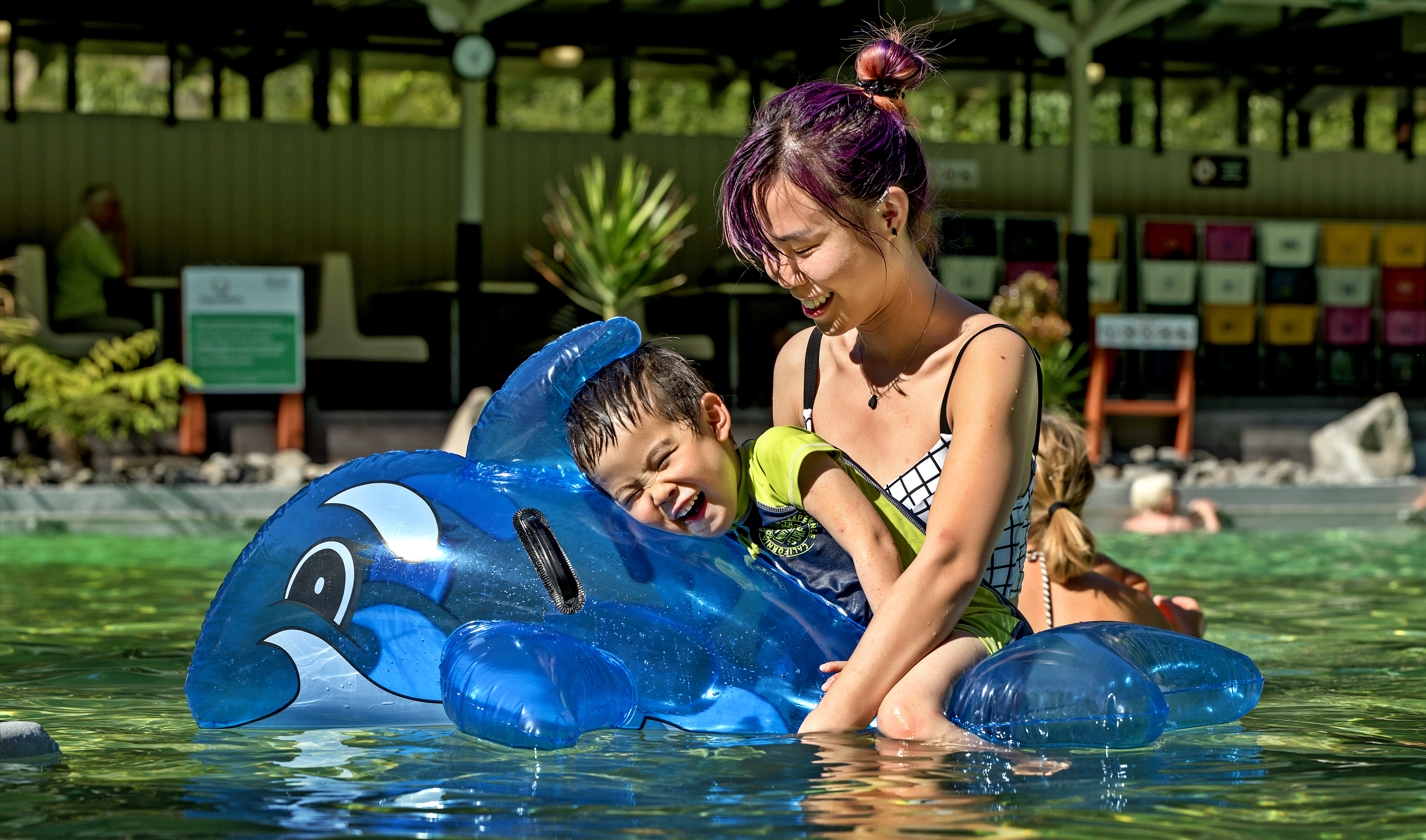 Families, couples, groups and individual travellers give glowing feedback about the onsite Thermal Hot Springs. Featuring two large outdoor mineral pools, twelve indoor private mineral pools, a fresh water pool, two spa’s, warm interactive children’s playground with tipping bucket and a giant dragon waterslide. The pools are naturally heated from a geothermal spring and contain many natural health benefits; they are drained and cleaned every single day! Guests receive heavily reduced prices to the hot pools and all day access.