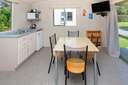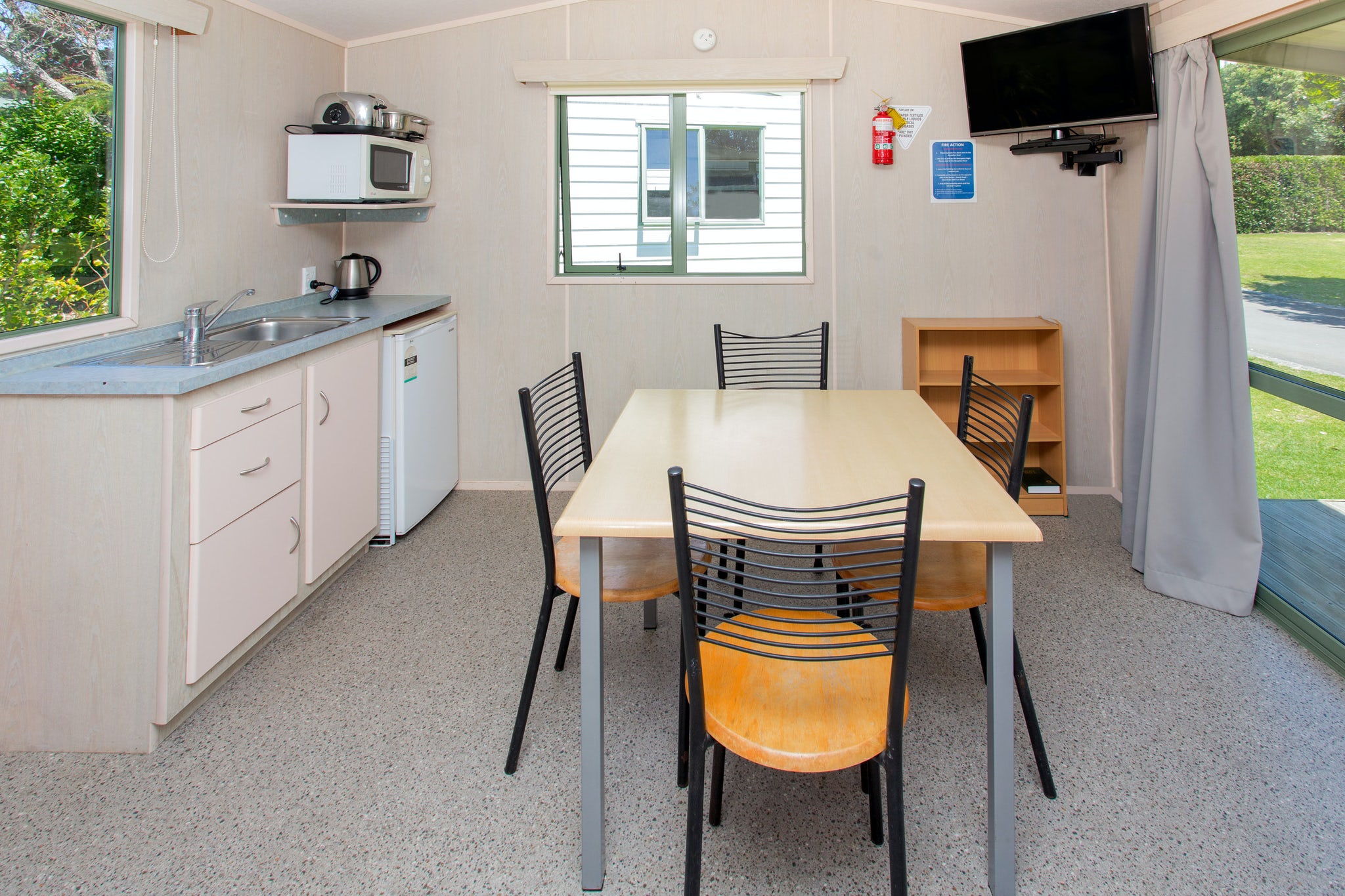 This open plan living space has two sets of bunks, one set with a double on the bottom. Apart from towels, all is provided for you to relax and enjoy your stay in these cosy rooms.
