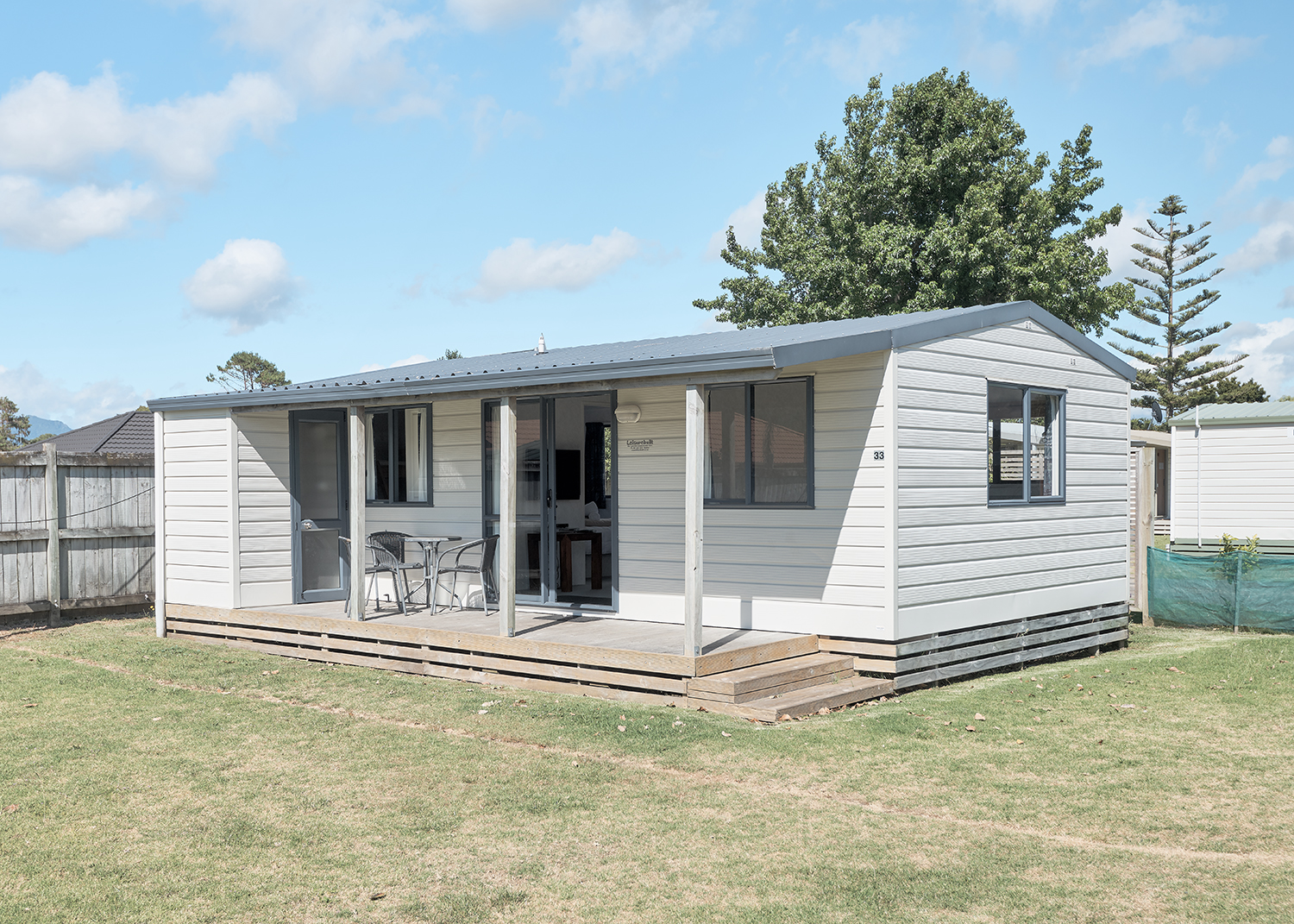 The cottage is stand alone and features a deck with outdoor furniture and a storage room - perfect for pushbikes or fishing rods!