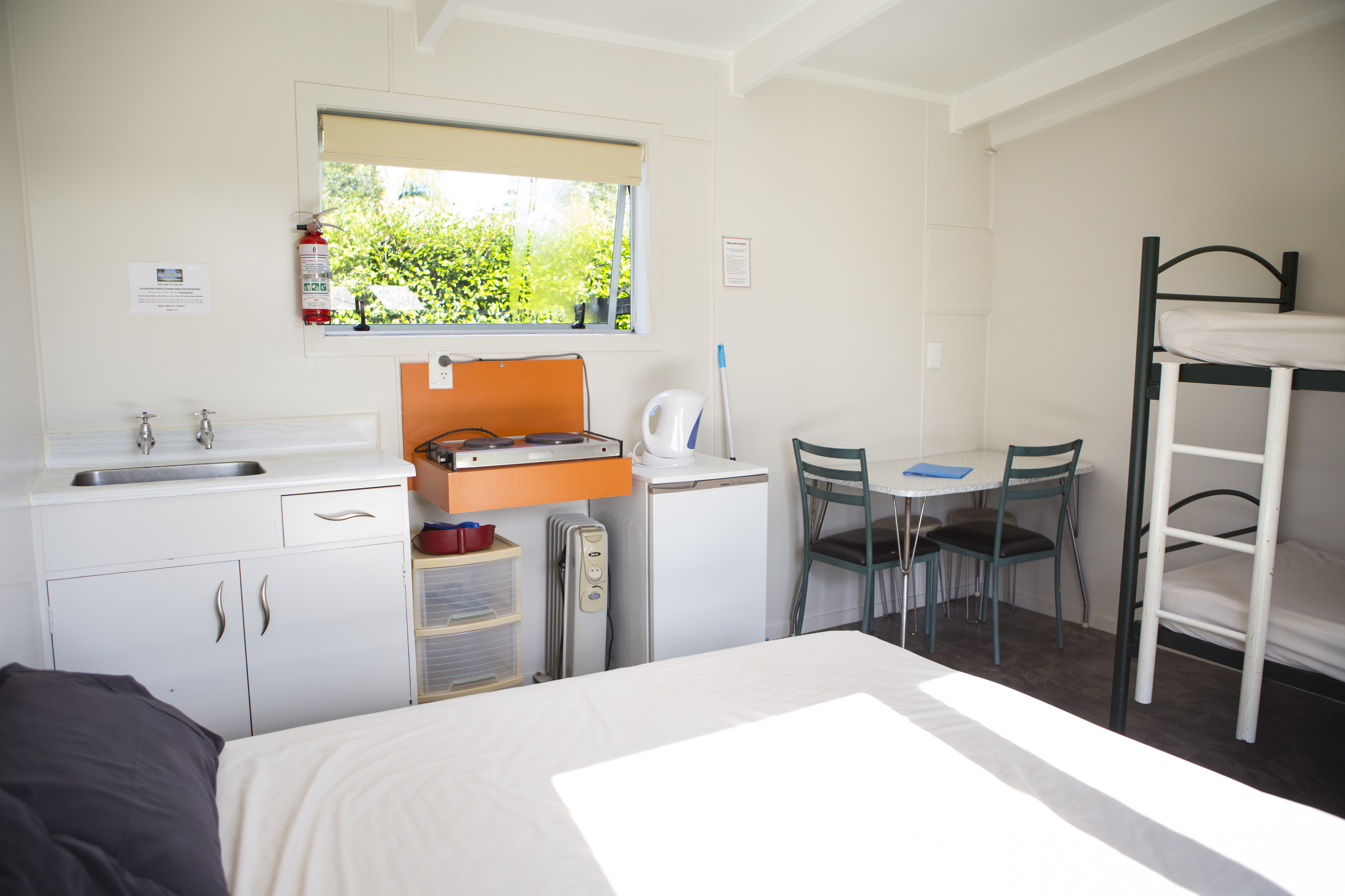 These compact studio style units are equipped with dining table and chairs, a kitchenette with twin hot plate, small fridge, electric jug, toaster and crockery.