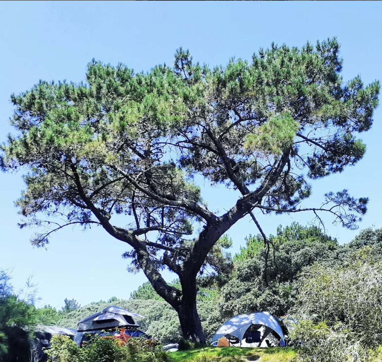 Great campsite, tucked around a secluded bay with an incredible beach and pine forest.