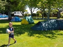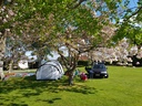 We took an unpowered site ($16 per person), there's a large grass area where you can set camp, either near the trees or further away (your choice). The lady at the reception was nice and friendly. The facilities are clean. The kitchen is big enough, with stoves, sinks, tables, chairs, dish soap, kettle, microwave, fridge and a few pots. The showers are free and timed (5 min). But it was the silliest shower I've ever taken: they have good water pressure, which is great in itself, but not so great when you can only control the temperature and not the pressure. I spent half of my 5 minutes either freezing or being burnt, reaching for the wheel-like knob and trying to get it right. It probably gets better at the 2nd try. There's a big play area for kids. The laundry machines operate on coins, and you don't need washing detergent (liquid detergent is dispensed directly into the machine, included in the price). The strange thing is that the kitchen closes at 9pm - so if you arrive late at the camping, you need to hurry. No one kicked us out at 9 sharp, but the owner did come at 9.30 to close it (luckily, we had just finished doing our dishes). Same goes for the laundry room, open from 7am to 9pm. Good mobile signal. All in all, a good place for our one night stay.
