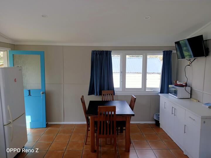 This studio unit features a kitchenette with a large fridge/freezer, microwave, jug, toaster and cutlery / crockery. Freeview TV with possibility to connect to your own Netflix account. Close to communal facilities such as toilets and showers, kitchen, barbecue area and swimming pool.