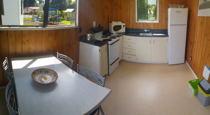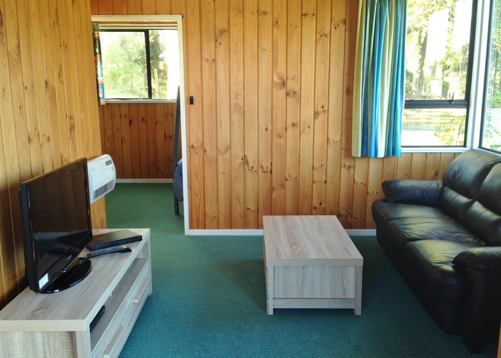 The bedroom has a duo bunk - a double bed with a single bunk above it. There is also plenty of space for a cot.