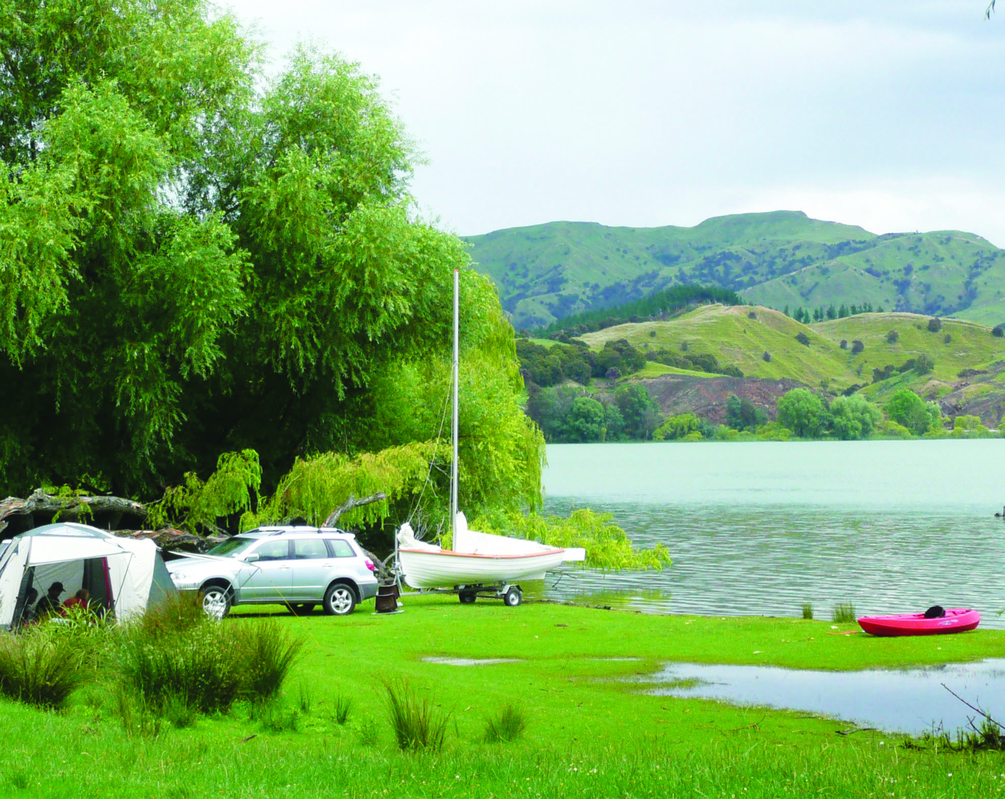 A large, low cost camping area, for all vehicle types, on the foreshore of Lake Tutira.