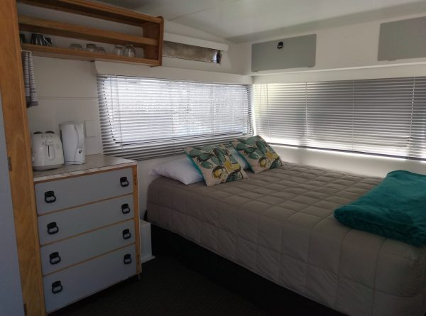The family caravan has been fully renovated and contains double mattress, bed linen, fridge, cutlery, plates, cups, glasses, jug, toaster. We have added a full awning with single bunks. It is also close to all amenities, including the kitchen.