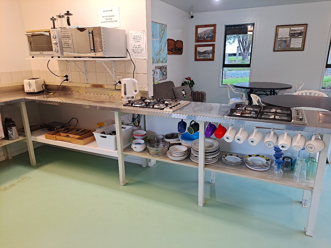 WiFi is free and each voucher gives 300MB but not always reliable connection. Small kitchen area with not much area should many campers be in at same time. Has barbecue that can be used.