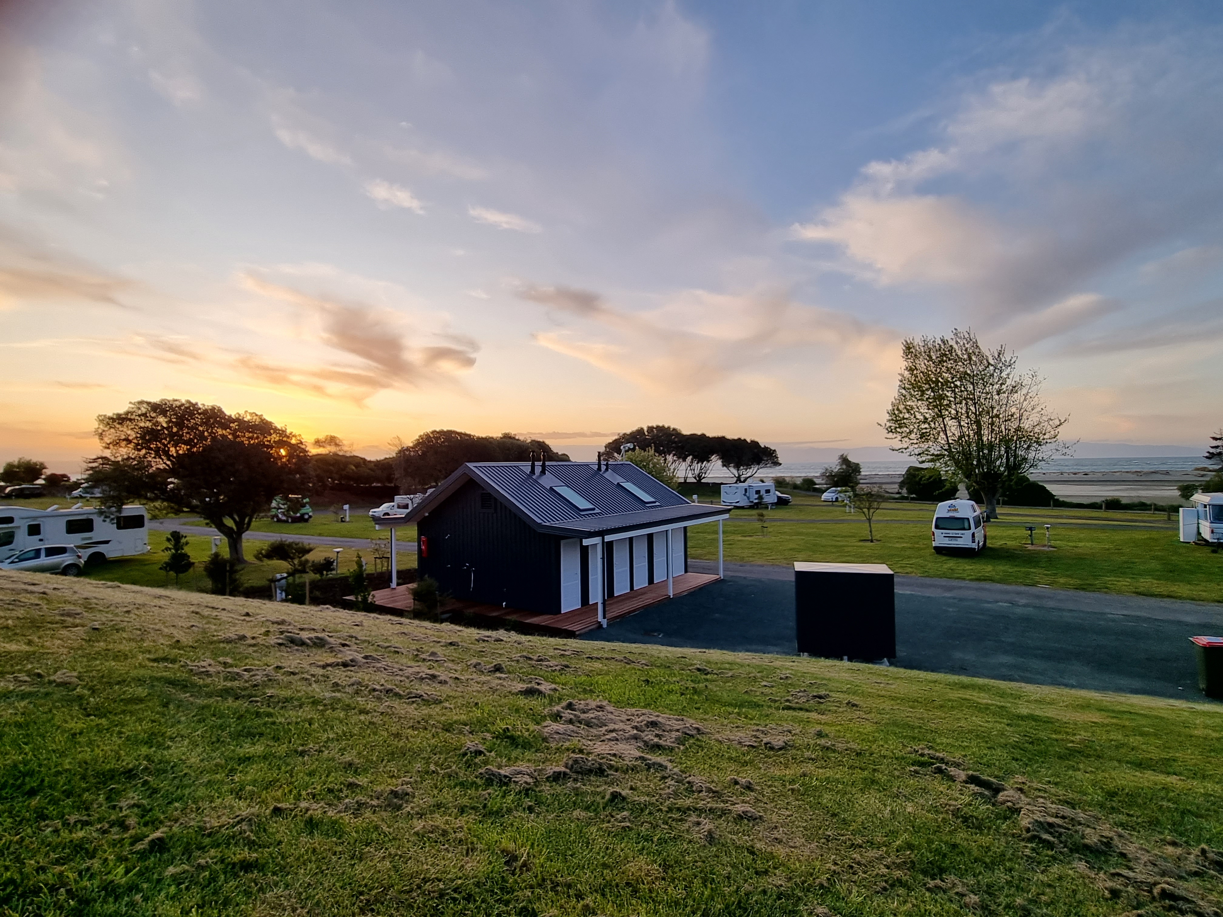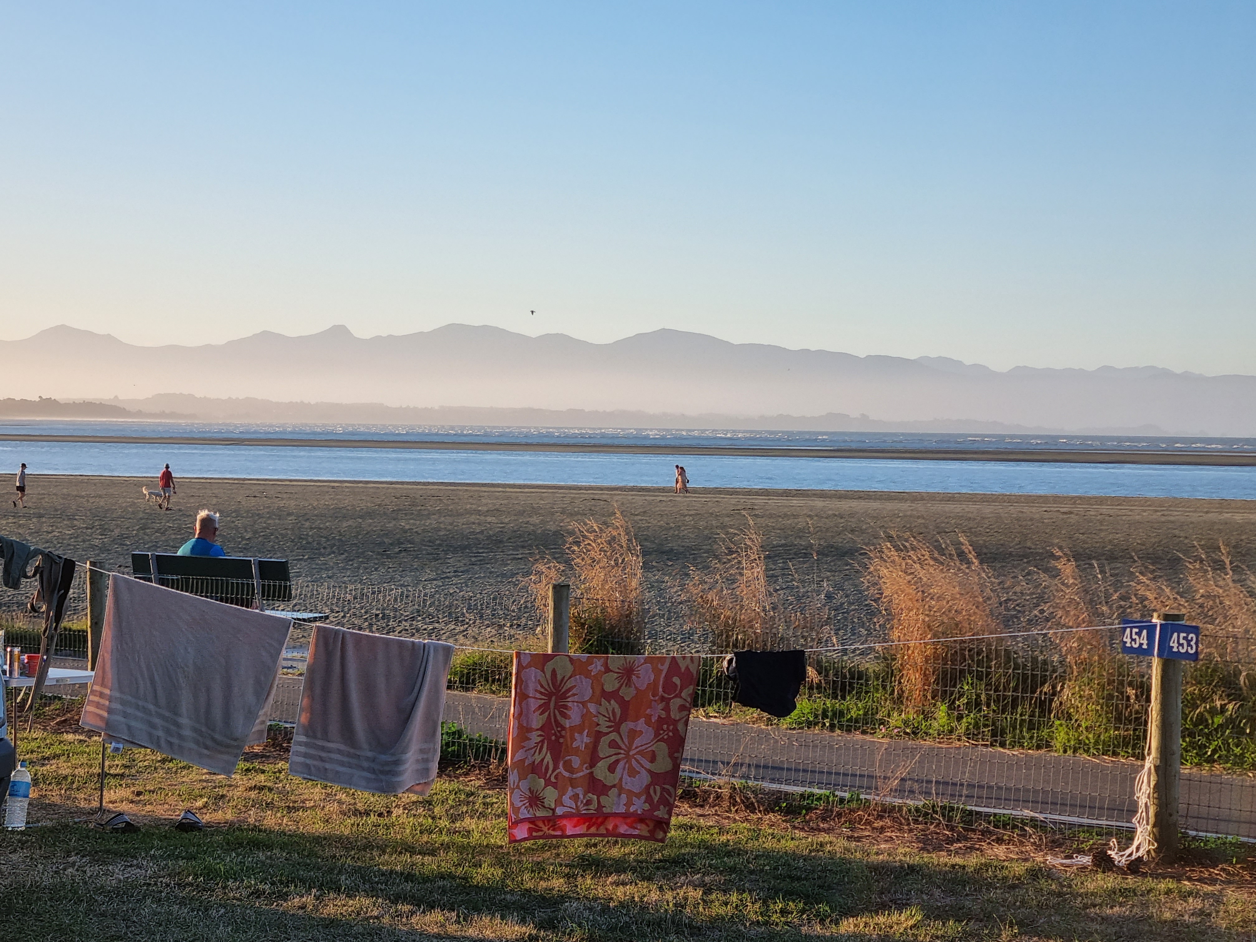 We were right by the beach, nice views and walks nearby. the ablution block (Teal area) is brand new and really good, great free showers and piped music too! The kitchen and laundry is well equipped, an older block but clean. Plenty of friendly folks staying here and reception were helpful and friendly. Wi-Fi over 500mb is paid but wasn’t very strong where we were so not really worth the money. There are some nice cafes within walking distance. Right under the nelson airport flight path and flights start at 6:30 which is not great if you like a lie-in.