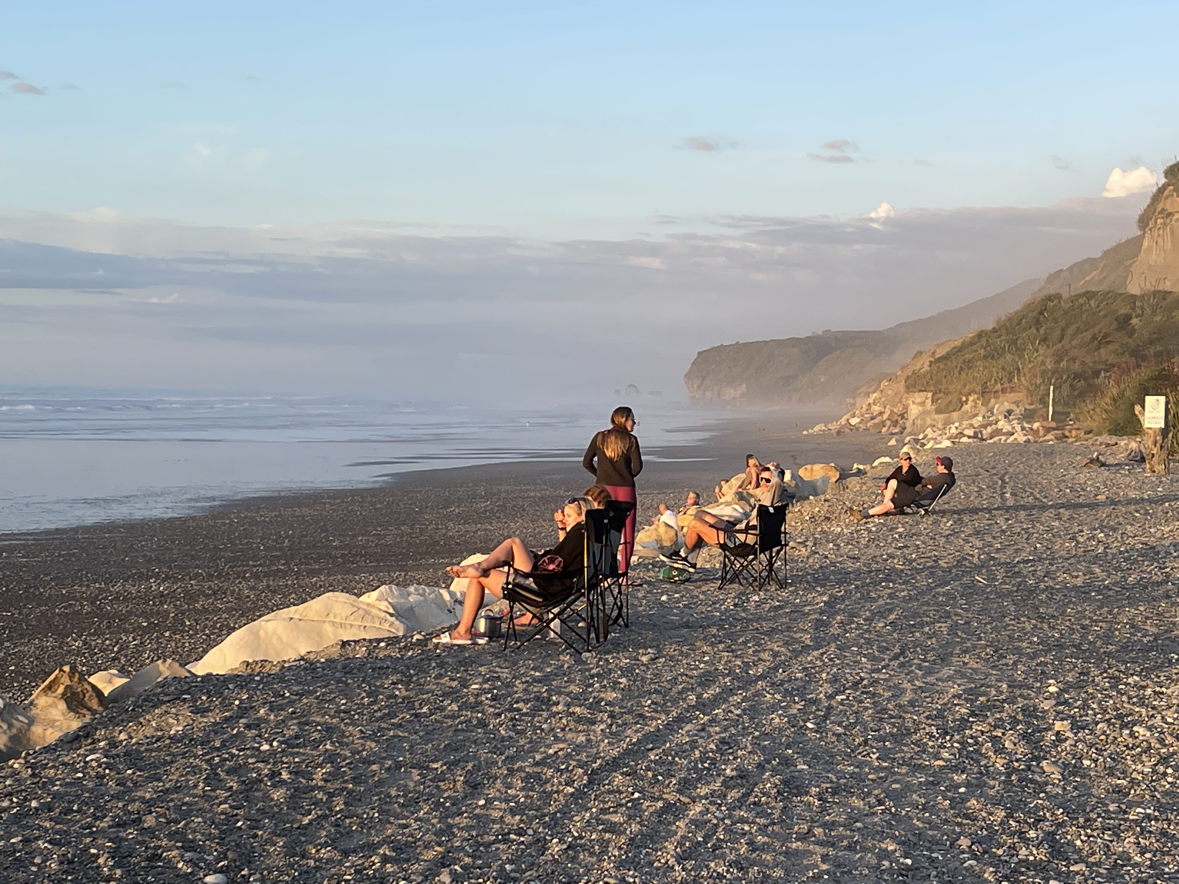 The website promises “Old School Camping” and that’s exactly what we got - clean toilets, fabulous showers and a large, comfy common room with a big kitchen containing extensive culinary equipment and washing up sinks with draining racks, tea towels and detergent. Also it is right at the back of the beach, on the other side of a protective pebble berm.