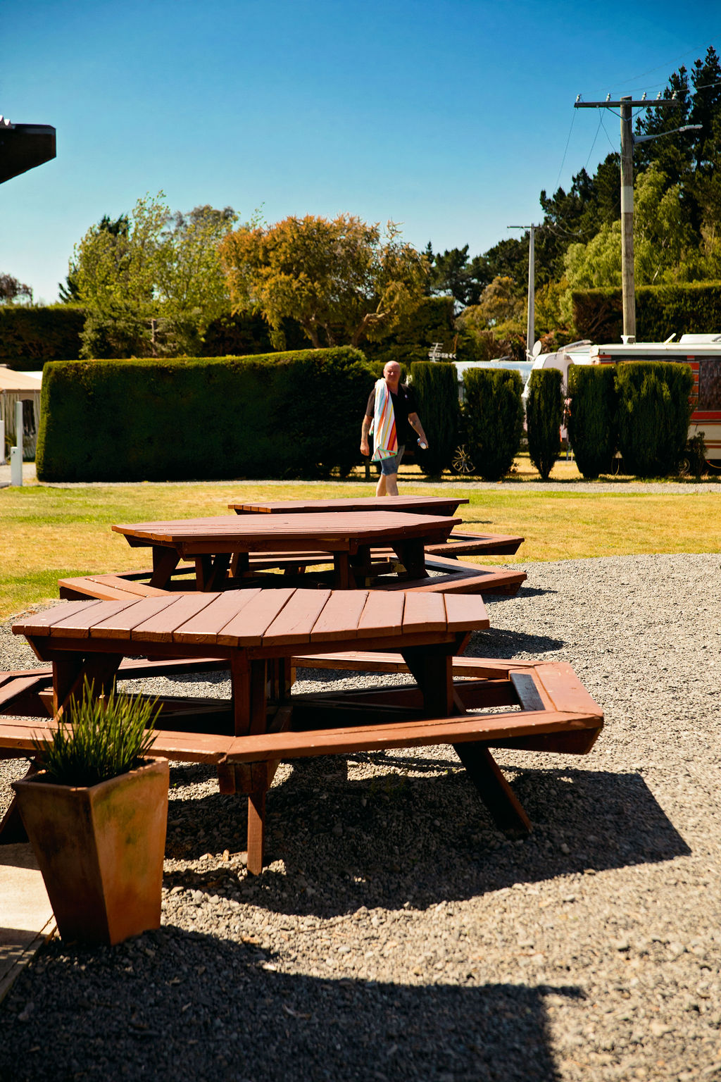 Facilities are spotless and just $2 for 8 minute shower (for women, men are 5minute). They even have nice outdoor seating areas, both sheltered and unsheltered, and a BBQ. Very good price!