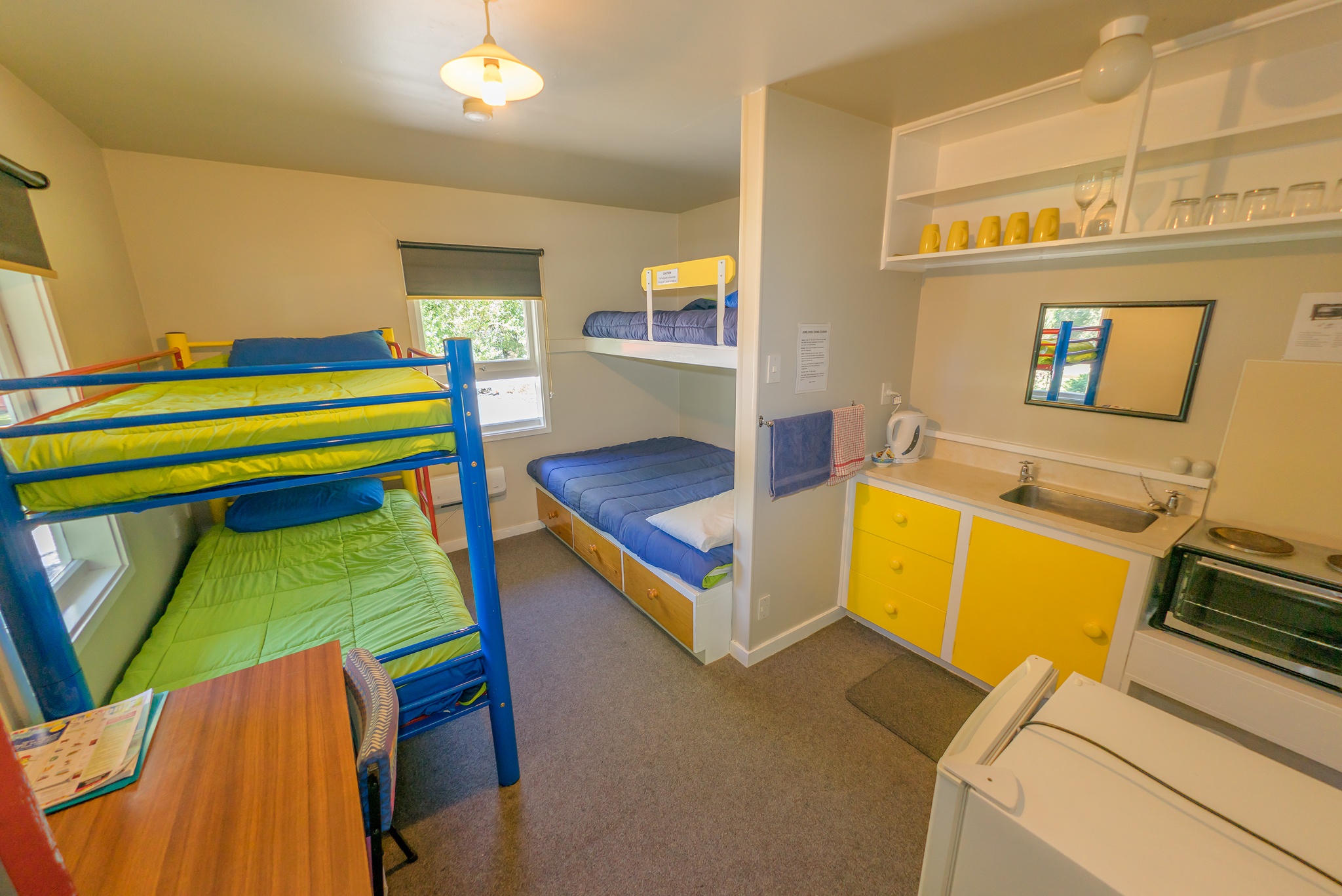 Available options include powered and unpowered sites, cabins, group accommodation, a private fully equipped kitchen, dining room and our Pod.