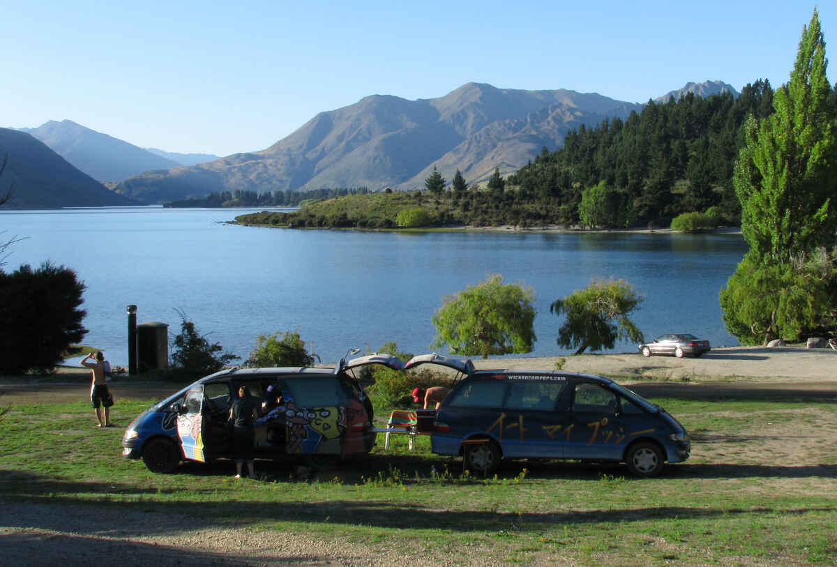 We arrived into Wanaka on a very hot late summer Friday night and all campsites were booked up, except this one. You can’t book here (or couldn’t when we visited), it works on a first-come first-served basis, and the i-Site told us to visit here on the off chance. We did and took the campsite’s last remaining plot, a non-powered site right at the bottom and close to the lake with unspoilt views. In places like this you should expect to pay higher prices, so it didn’t bother us, we were just delighted to be able to stay in such a beautiful place. We decided to stay an extra 2 nights and moved to a powered site, still with a stunning view. Facilities are fine, paid showers. Can get dusty in good weather, not a problem for us though. We hired bikes from the campsite (very basic) and cycled around the headland to the town (I think 6ish miles) which was fab. If you accept you might have to pay more, I would recommend here. I think it would be nicer than the other campsites closer to the town...