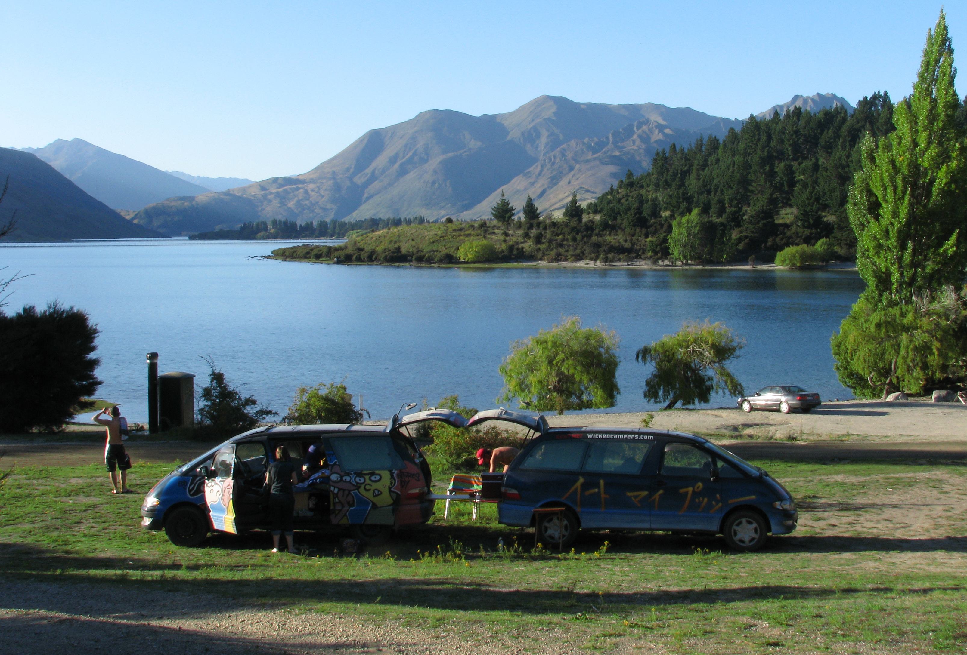 This site has a spectacular view over Lake Wanaka. The location otherwise isn't anything special - you're not close to shops or eateries. The facilities are a bit run-down and not particularly welcoming - I couldn't find a common area/lounge of any sort, which is unusual from what I've experienced. There are a lot more "permanent" or long-stay residents here than at the other places we stayed; people had some very fancy set-ups going on here! The path down to the bathrooms from the campsite where we stayed is a bit treacherous. It is not safe for flip flops/thongs and you definitely need to bring your flashlight. This could definitely stand to be re-graded for safety.