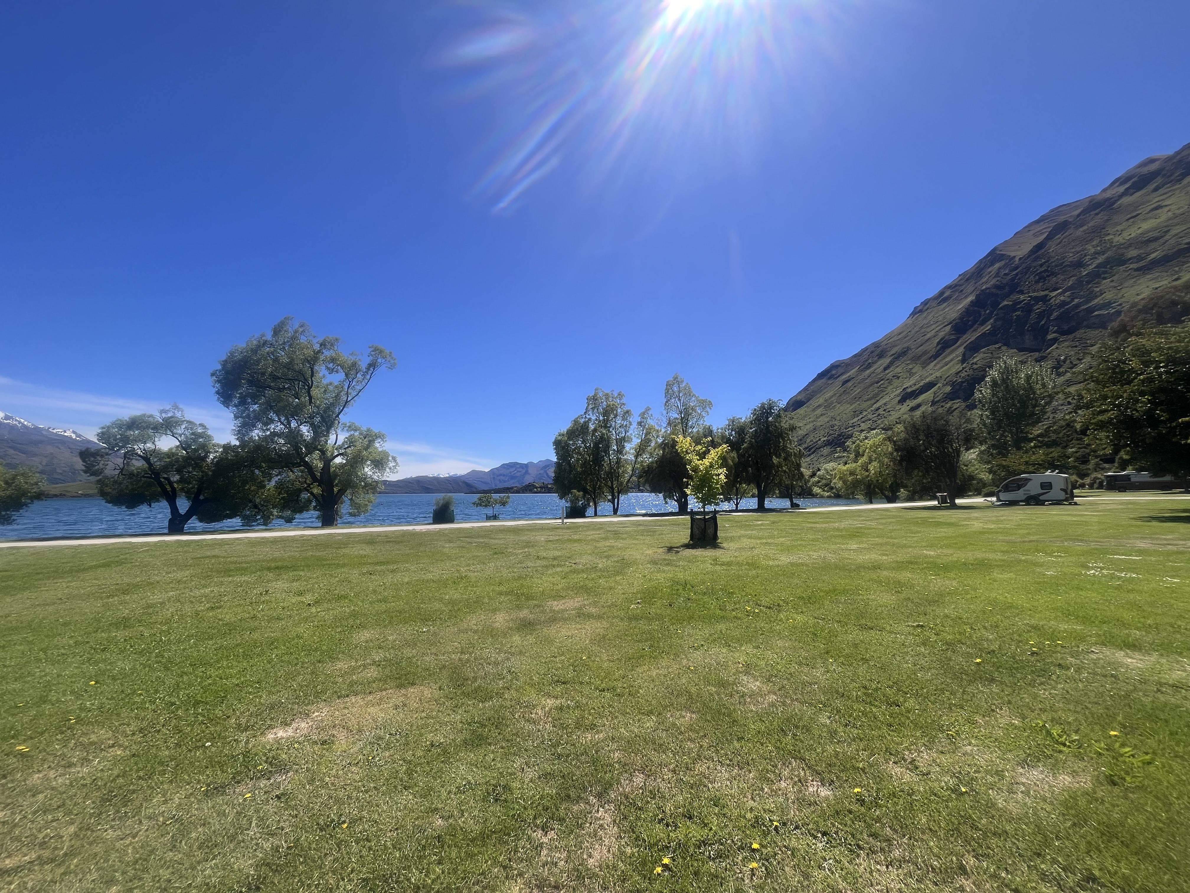 Unpowered and unspoiled, these grassy campsites are perfect for those wanting to reconnect with nature. Wake up to breathtaking views of Lake Wānaka and the surrounding mountains in this peaceful setting. Pets are welcome outside of Peak season (December 20th through Waitangi Weekend). Please note: Grey water disposal is not available at this site.