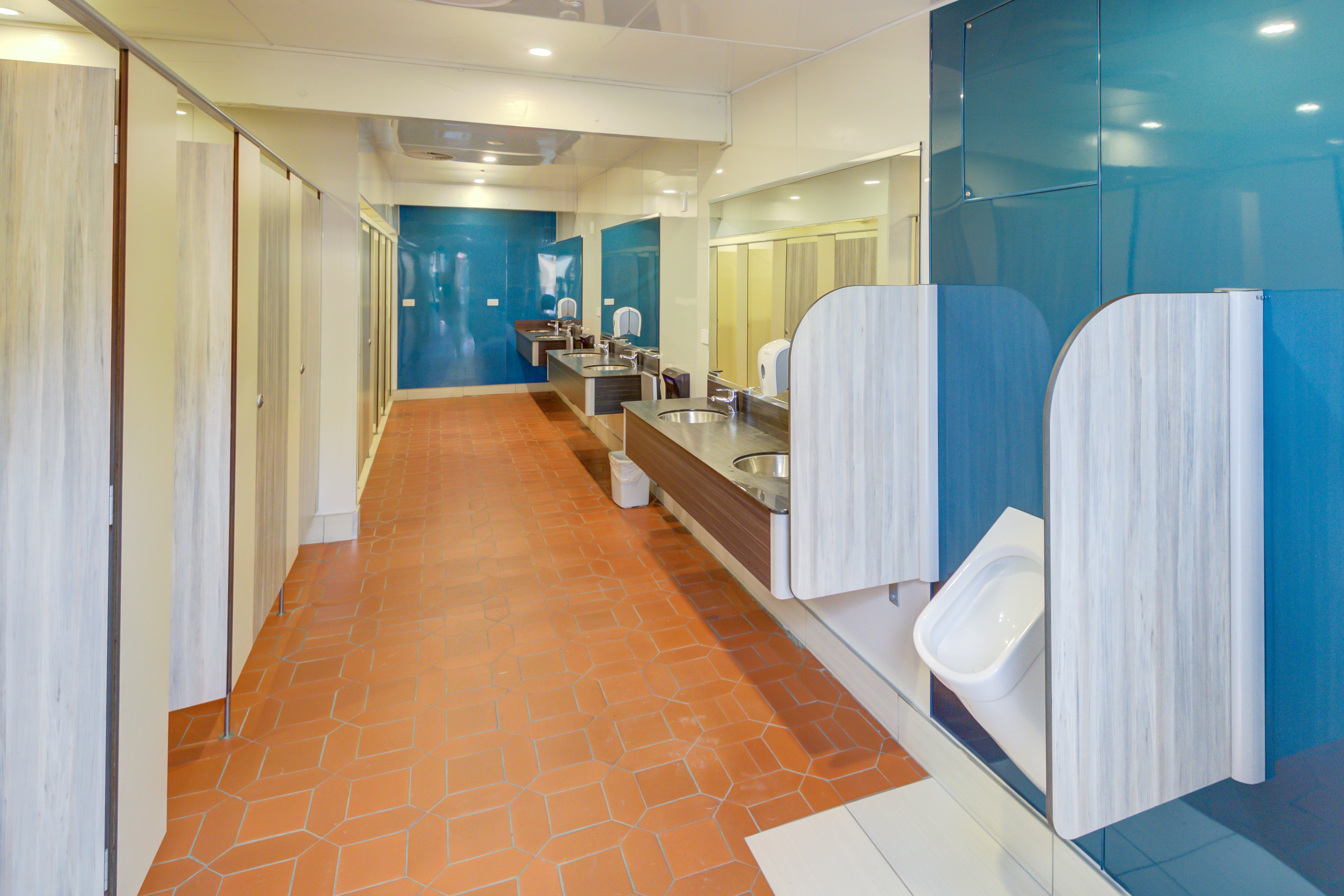 Large toilet shower block and very new and well kept. Pleasant helpful staff. Large powered sites.