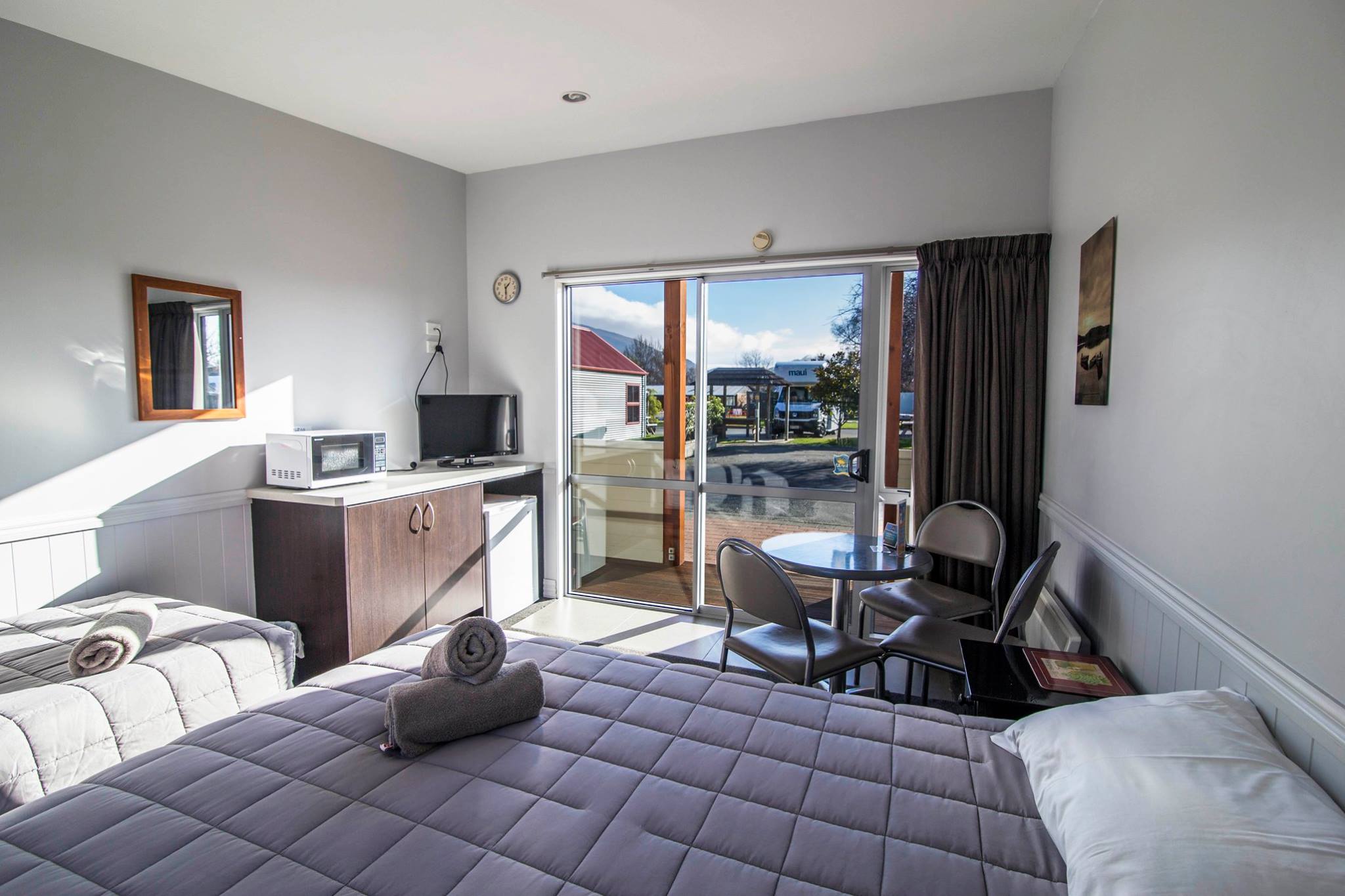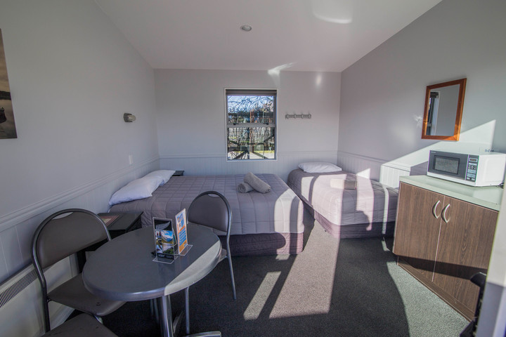 The unit is equipped with breakfast making facilities, including a fridge, electric jug and toaster as well as a microwave.