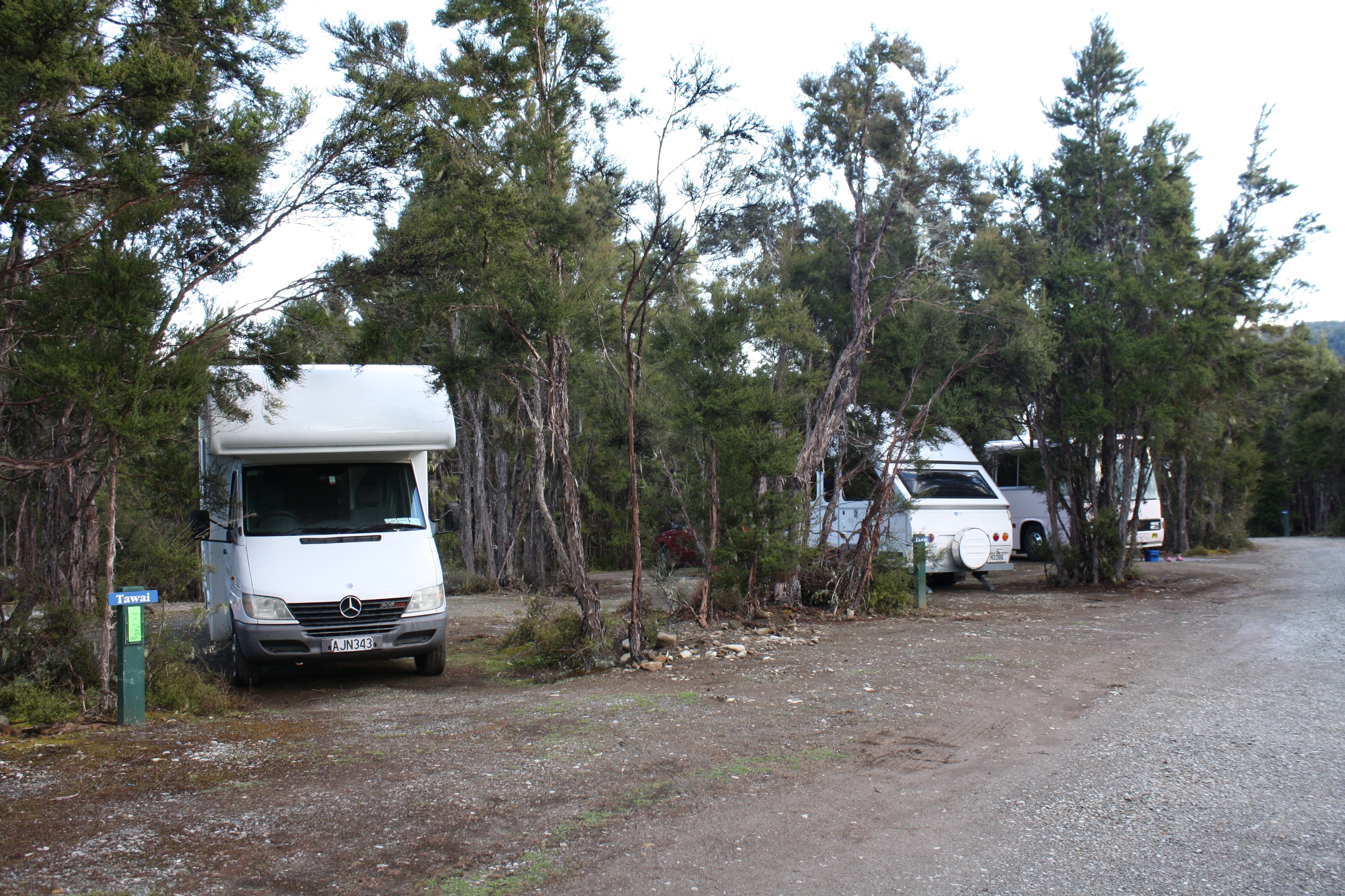 Beautiful, quiet location at the lake. Big sites in the trees. Start of tramping and walking tracks nearby. Price: 26 NZD for 2 persons with a campervan.