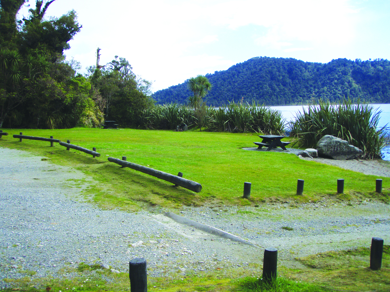 Camp beside one of Westland’s forest-lined freshwater lakes. Popular for boating, trout fishing and swimming.