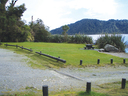 Space on grass for a few tents, and a gravel parking lot for campervans.