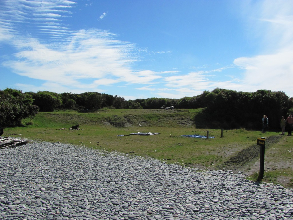 Camp near an old gold mining settlement and a seal colony. Tracks lead to historic suction and bucket dredges, and Galway Beach.