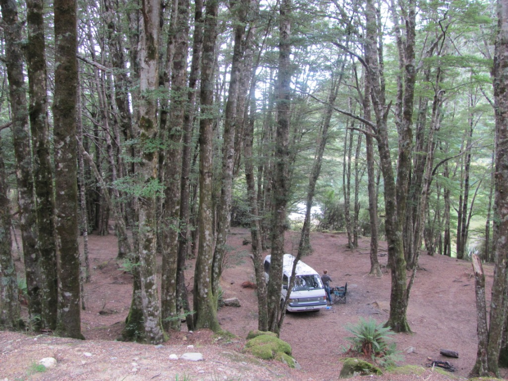 Free campsite inside the beech forest, daytime sandflies, nighttime mosquitoes.