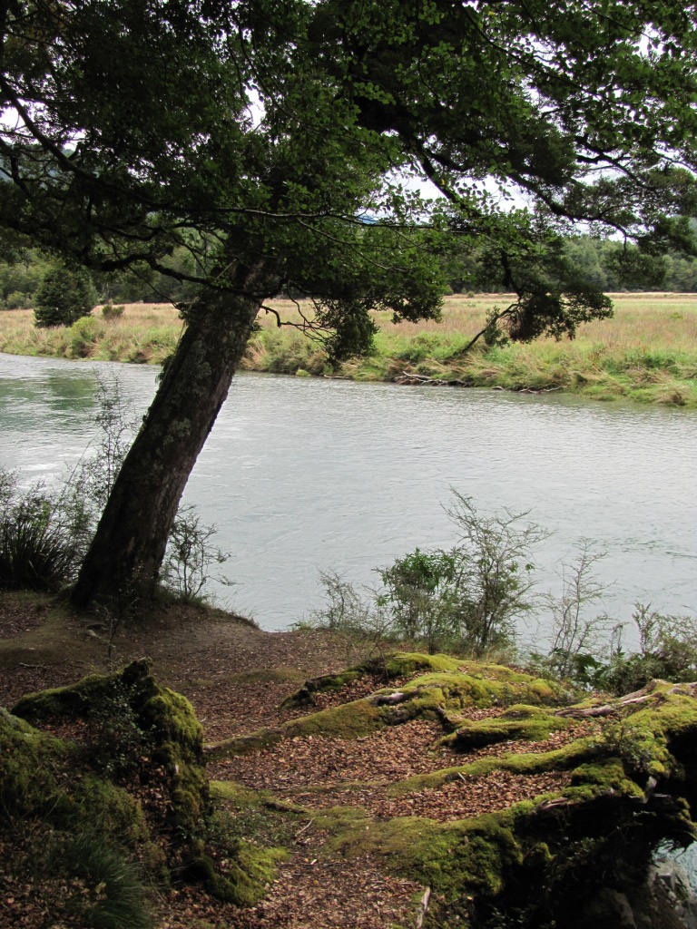 This is a standard campsite in northern Fiordland. Camp beside the Eglinton River in a grassy area surrounded by small pockets of beech forest. Fly fish in the river.