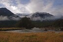 Pretty view of mountains and river very close, can't park alongside river though.