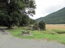 This is a small campsite next to the Eglinton River and the main road. There is a very tight turning bay at the end surrounded by tall trees. There are picnic tables here, but please note that fires are not permitted.