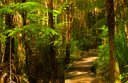 For the next 1½ hours the track winds through coastal forest on a metalled surface. The track is formed and aided by steps and wooden footbridges in steeper places.