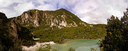 The Crater Lakes nestle at the foot of a scarlet and white cliffs, encrusted with sporadic clumps of tenacious vegetation. The colours arise from the hydrothermal activity, which cooks the rock to release minerals and chemically alters their composition.