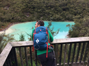 The lake visible from the lookout is a milky peppermint colour and is accompanied by the bubbling of nearby hydrothermal outlets. Steaming fumaroles vent wisps of cloudy vapour on the hilltop above.
