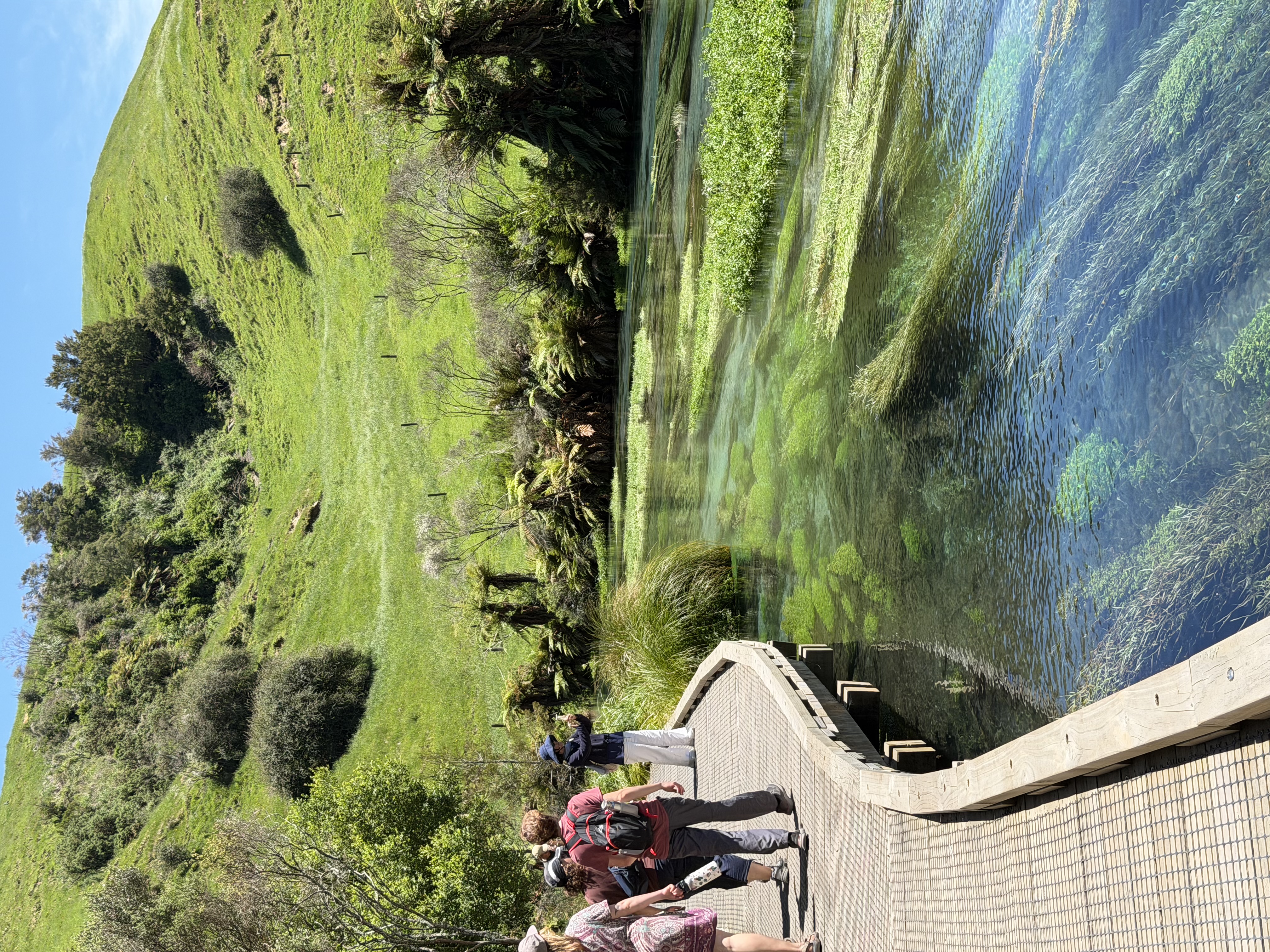 The pumping shed for Putaruru’s water supply and viewing platform at the springs are barricaded to prevent swimming. Human skin oils and dislodged attachments are polluting to the water and disturbing to the other life.