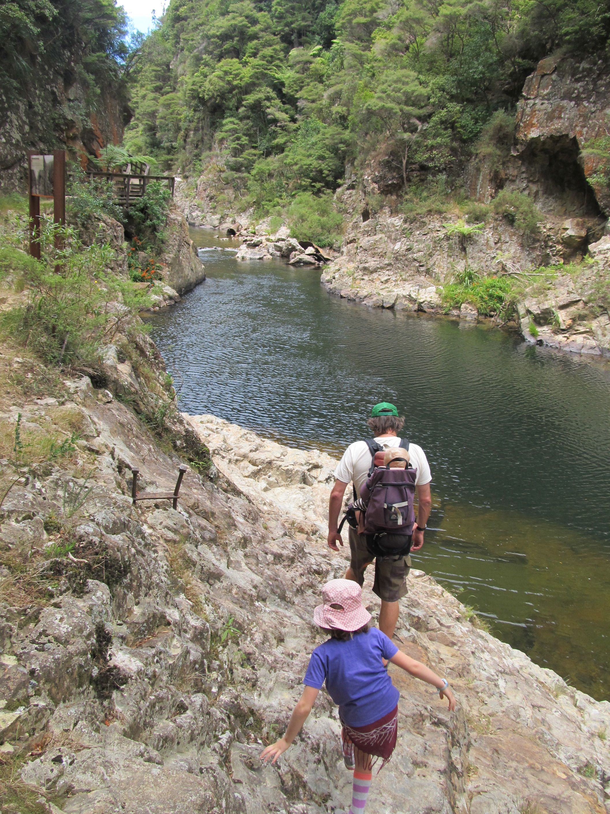 The start of the walk is signposted from the Karangahake Reserve,600 metres east of the railway overbridge on S.H.2, at the western end of the Karangahake Gorge.
