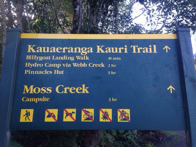 After crossing the swingbridge over the Kauaeranga River, the track remains wide, even and metalled. After bearing right at the junction with the Moss Creek Track, the track starts to climb. The steep path crosses Webb Creek on several occasions on its way to the Hydrocamp. The path is well-maintained but the surface is uneven.
