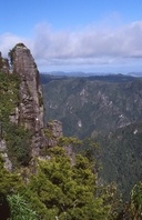 The Pinnacles (759 metres) are a serrated outcrop of rhyolite that formed around 8 million years ago. Like a toothed saw they cut the skyline. From the summit there are views along the entire length of the Coromandel Peninsula, from Mount Moehau to Mount Te Aroha.