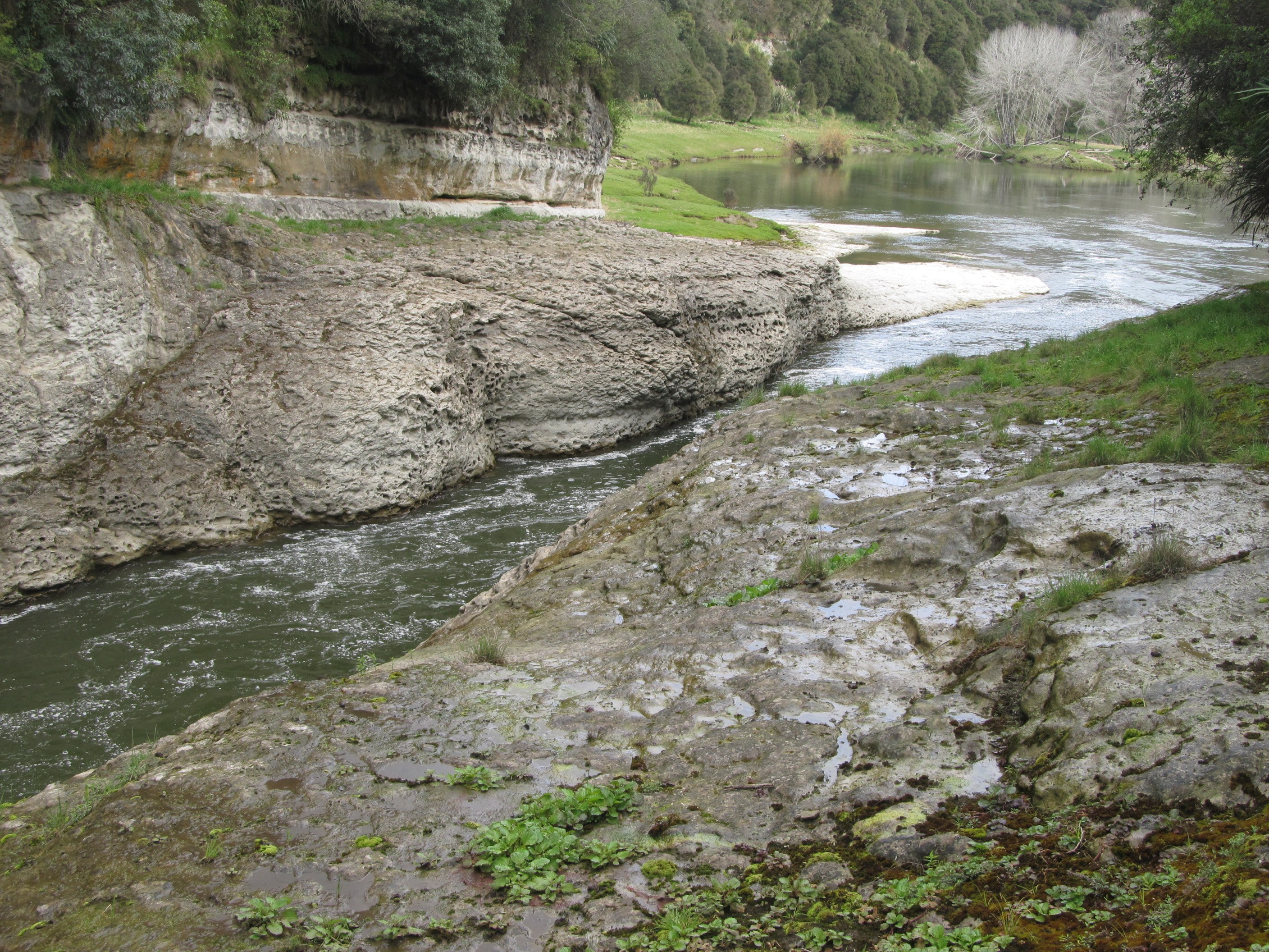 The rocks were formed around 3 million years ago in the Pliocene. In 1973 they divulged some bones of a previously unknown penguin species (Tereingaornis moisleyi). Whale and dolphin fossil fragments confirm the rocks were formed in a submarine environment and the decaying creatures were preserved in layers of accumulating sediment.