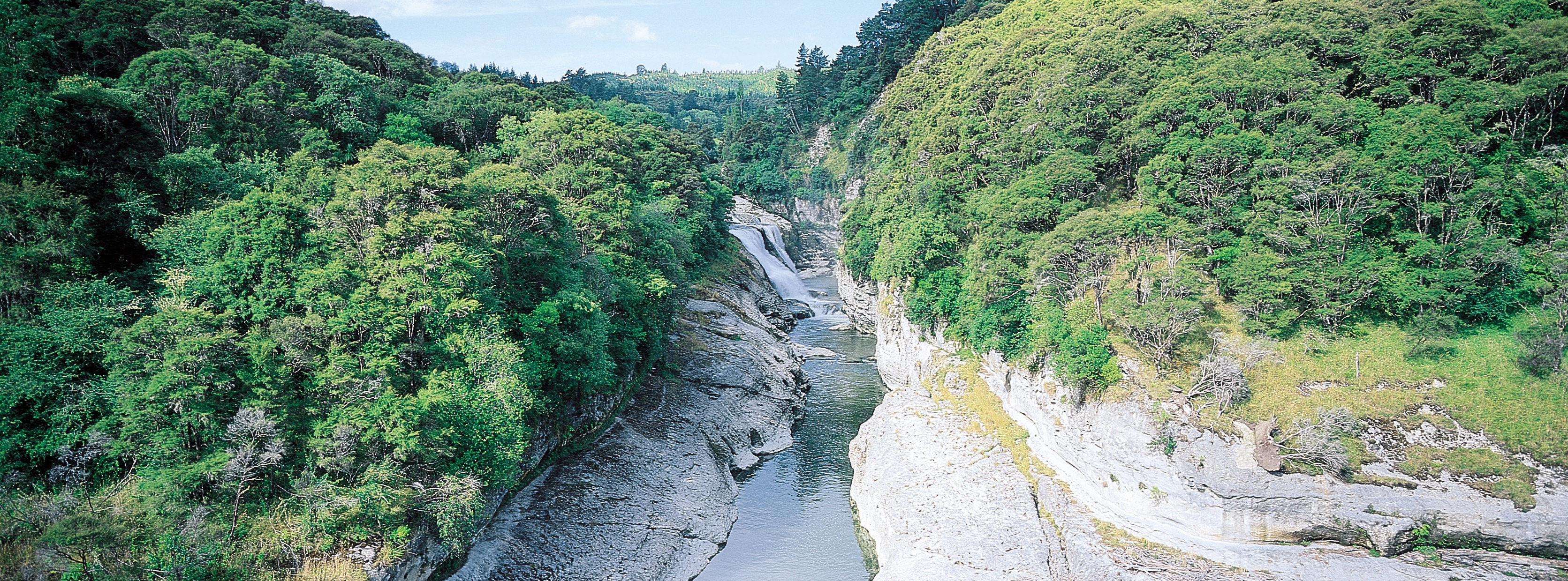 In Frasertown, 7.5 km from Wairoa, turn right into Tiniroto Road. 25 km further, just before Te Reinga, turn left into Ruakituri Valley Road, where Te Reinga Falls are signposted. Cross the Te Reinga Bridge over the Ruakituri River and the parking area is on the left. The start of the track is signposted from by the information board.