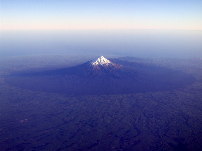 Mount Taranaki stands sentinel in majestic isolation over the region it commands.