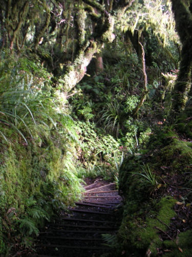 A pleasant walk uphill through changing alpine rainforest with the option of diverting to a lookout point offering views of the mountain and out to the coast.