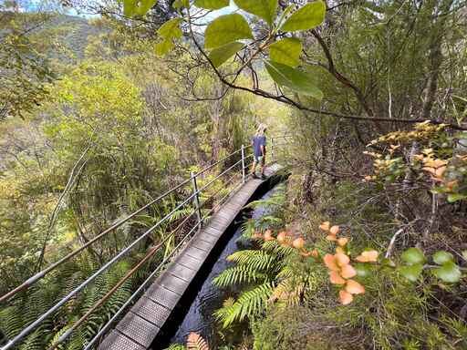 Amazing feat of engineering and a thrill to walk the narrow walkway attached to the side of the cliff. Look out for freshwater crayfish (Koura) in the channel.