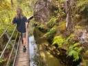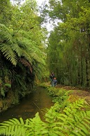 From here on you are strongly advised to carry small children in a backpack and watch other children carefully; a fall from the race and the water itself are potentially dangerous. The water race, which follows the steep contours of the hillside and is part canal and part aquaduct, was an engineering masterpiece for its time. If you look carefully in the water you might see large koura (freshwater crayfish).