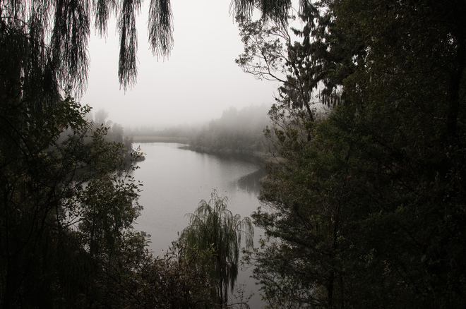 Even cloudy it makes nice mirror-photo's. If it's cloudy ánd windy...skip it. Track itself is a regular bushwalk with lot's of birdlife. Best part: The Robins and Fantails. They are extremely curious so will come real close (on your shoe or on a long stick on your shoulder)...if you're patient.