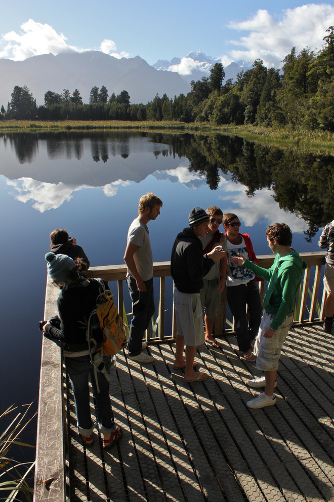 From the northern end of Fox township, turn into Cook Flat Rd and drive 4 km to where Lake Matheson is well signposted.