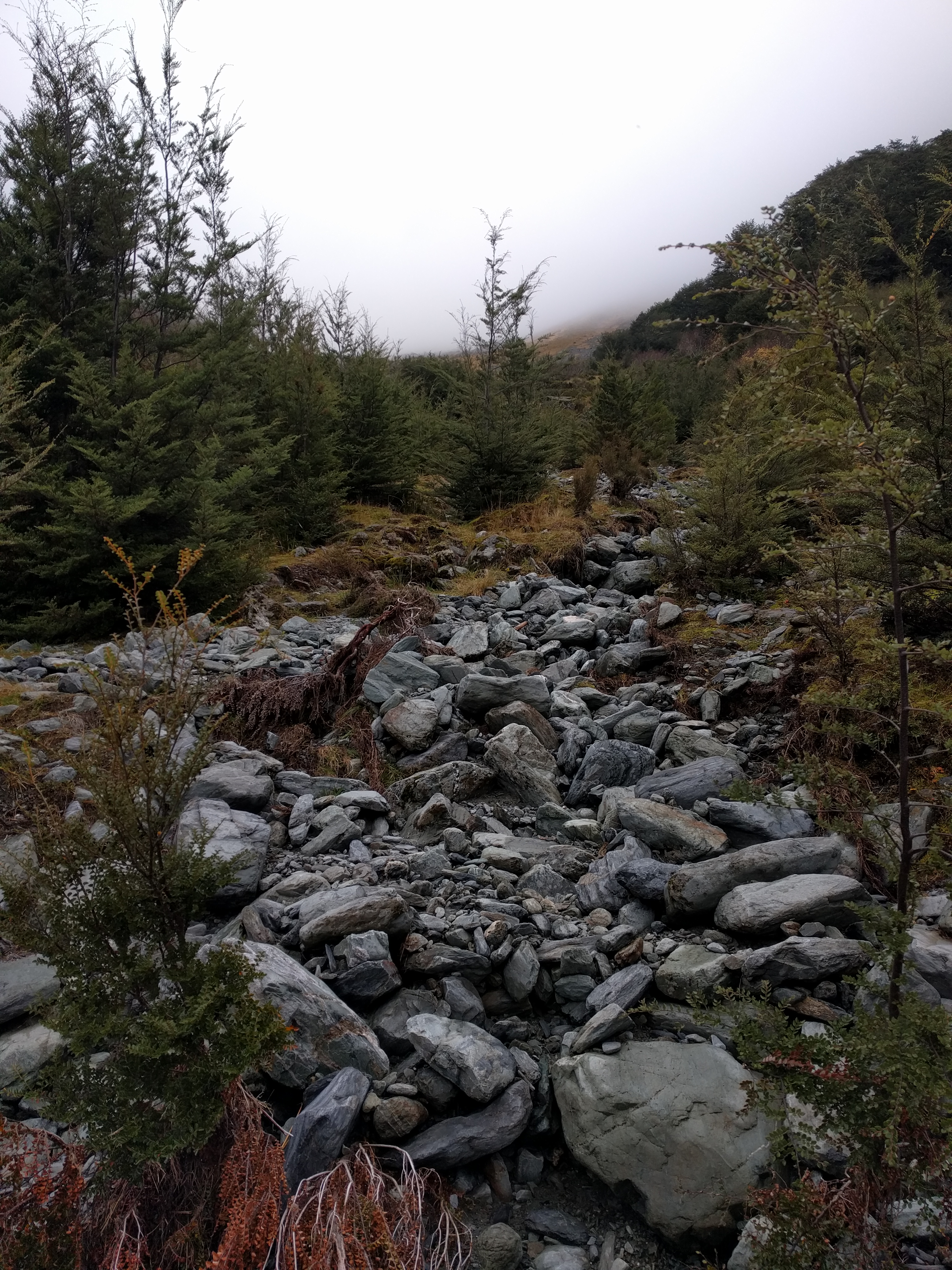 Follow the orange topped posts over the stopbank and cross Glacier Burn. This may be tricky after periods of rain.