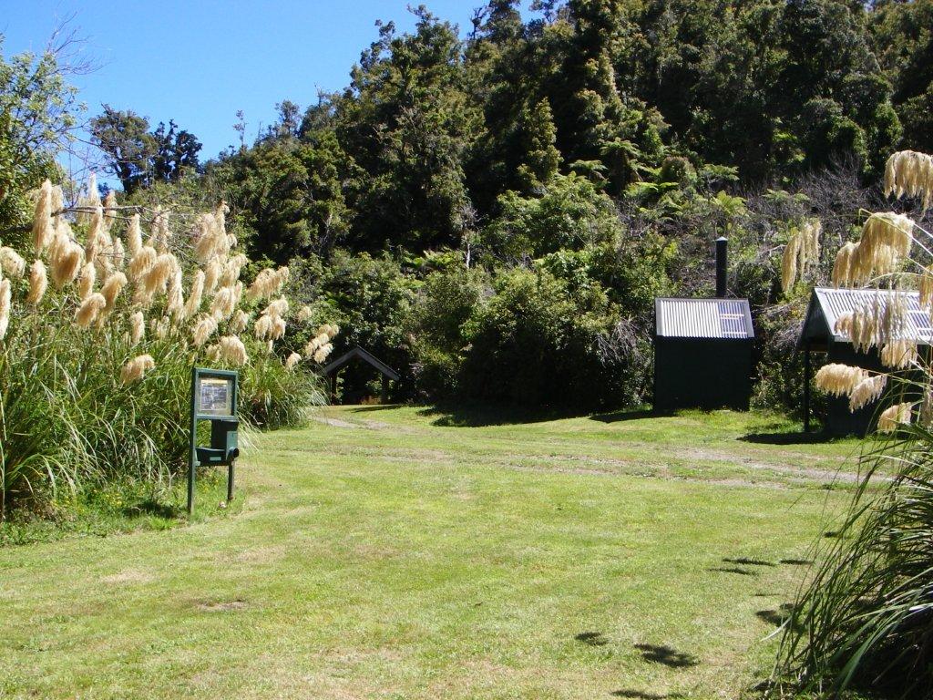 Camp on grass terraces adjacent to Okahu Stream. Good picnicking and walking in the forest.