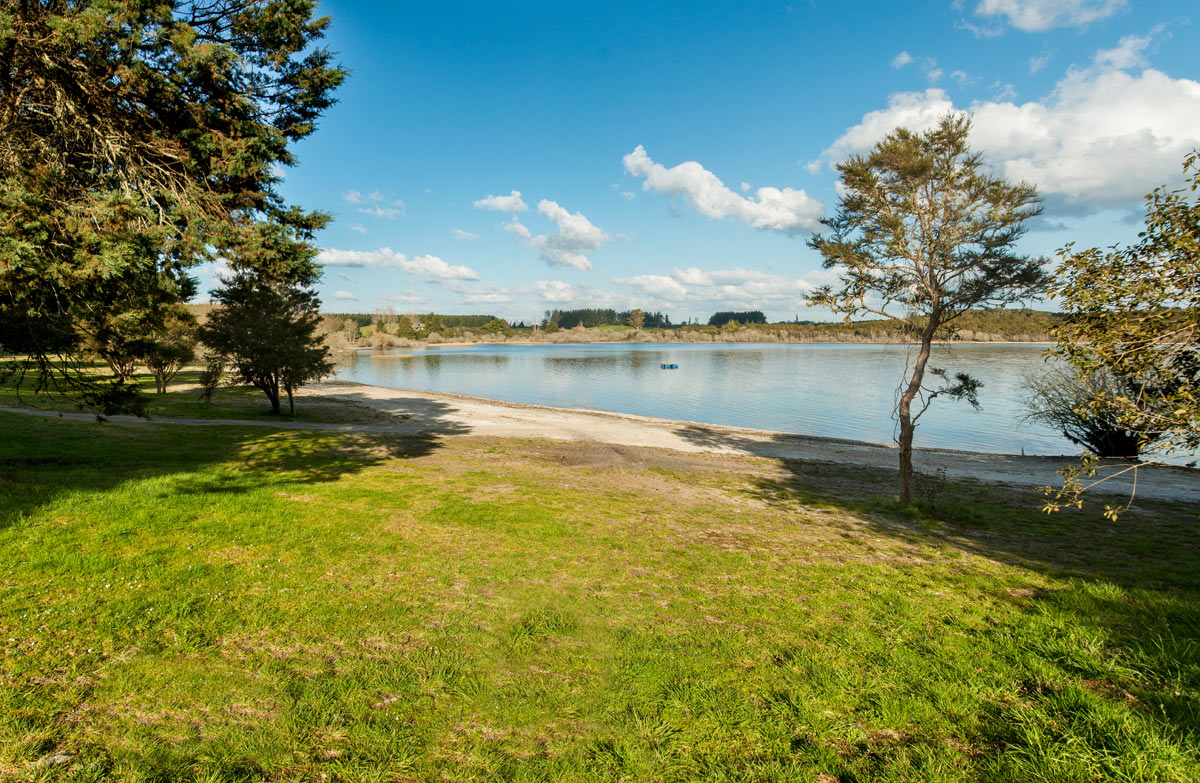 Camp on the shores of Lake Rerewhakaaitu; take binoculars for watching water birds.