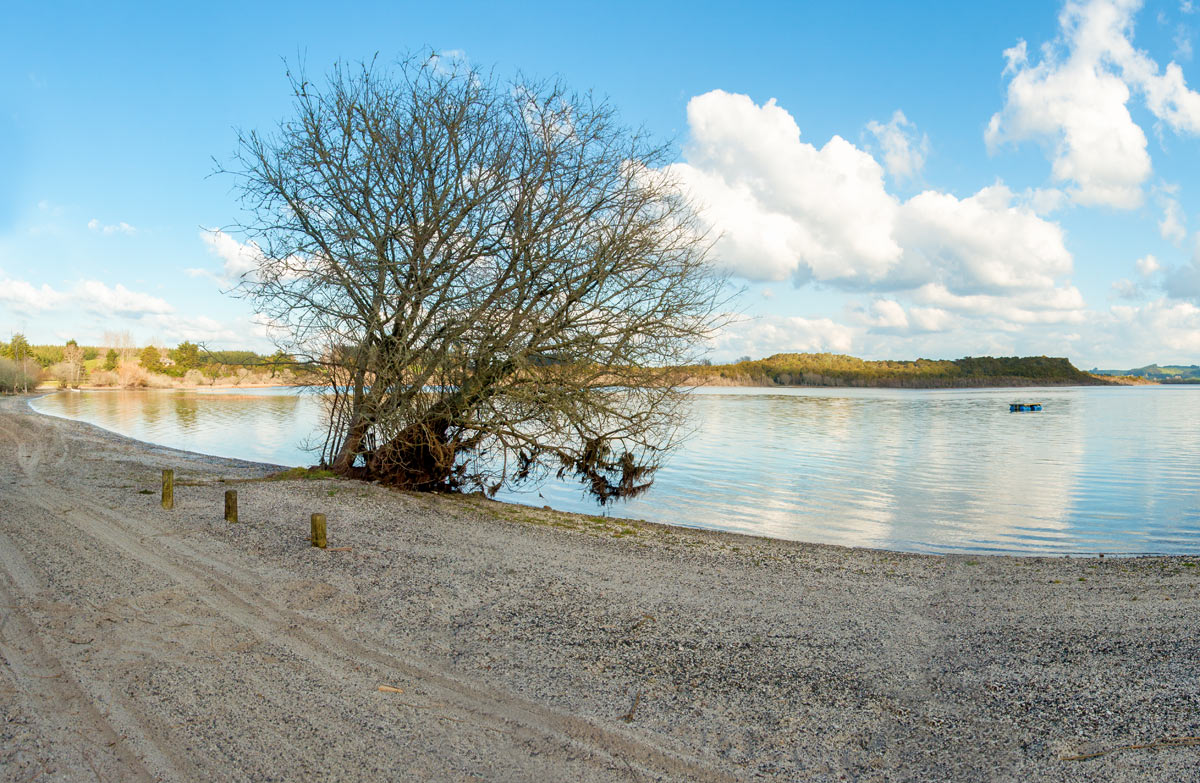 zoomCamp on the shores of Lake Rerewhakaaitu; take binoculars for watching water birds.