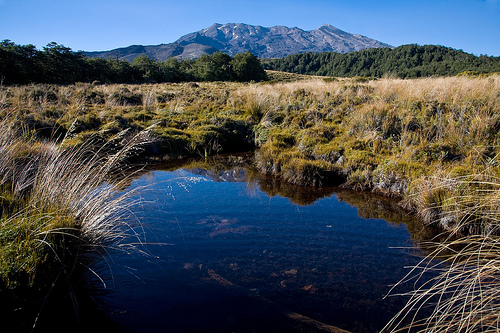 Take a left after 10 minutes at the junction with the Whakapapanui Track. The tussock studded country is dotted with alpine bogs (crossed by boardwalks). Ruapehu and Ngauruhoe are both reminders of how this land was formed.