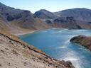 The climb to the upper lake is marked with poles and is steeper and rockier. There are cairns on the summit knolls. The Tama Saddle is exposed, especially in a westerly.