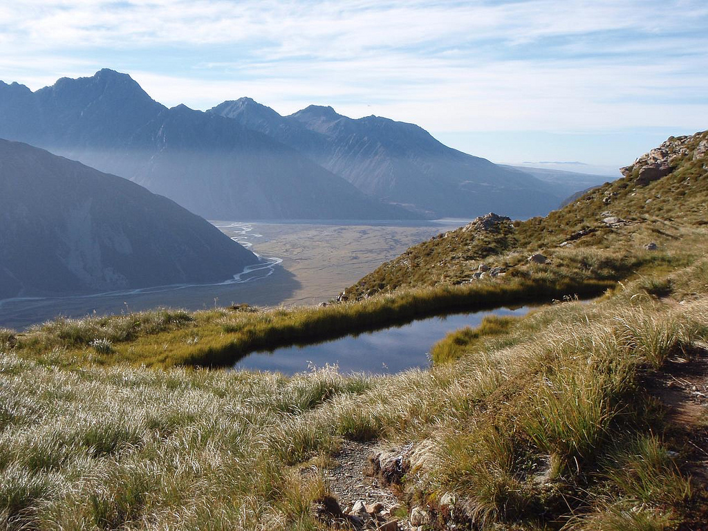 The most difficult walk directly up to a ridge but on a clear day, spectacular views of Mt Cook and Mt Sefton.